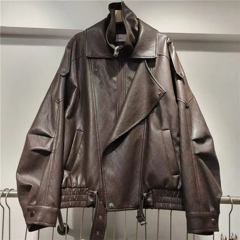 מעיל דמוי עור, עם רוכסן אופנתי ברמות.