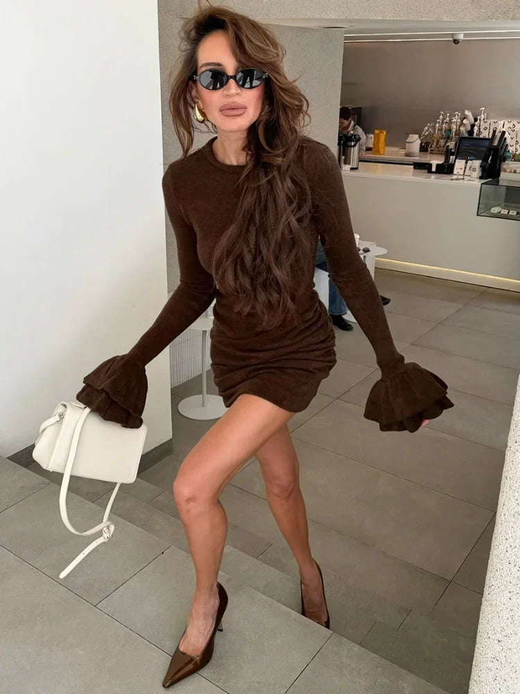 שמלת מיני עם שרוולים מתרחבים אלגנטי.