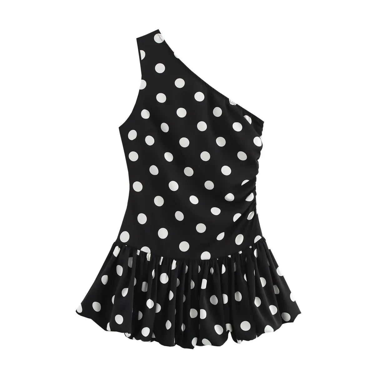 חולצת נקודות עם כתף אחת, עם קפלים נעימה ממש.